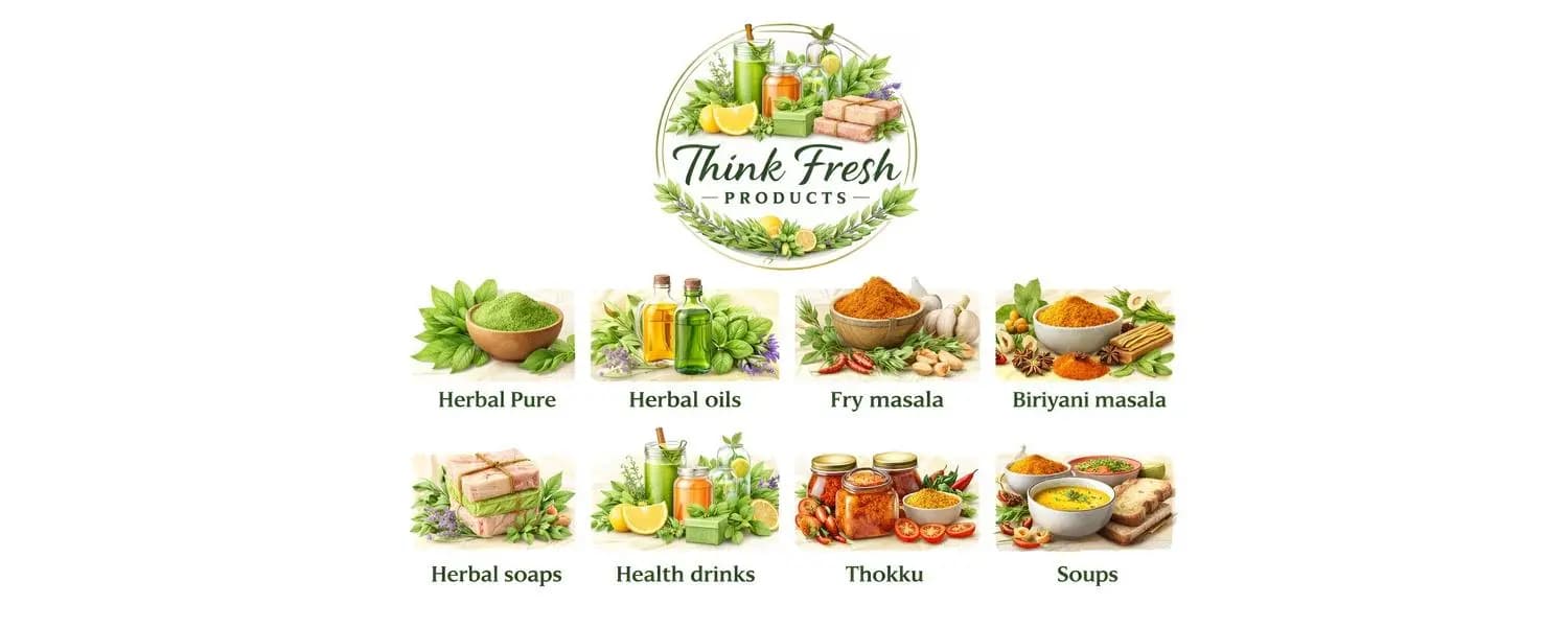 Founded with a passion for wellness, Think Fresh Products aims to provide authentic, hygienic, and high-quality herbal and food products at affordable prices. Our mission is to preserve the natural goodness of herbs and traditional recipes while ensuring safety, consistency, and effectiveness. We envision becoming a leading wellness brand that people trust for everyday health, nourishment, and well-being.